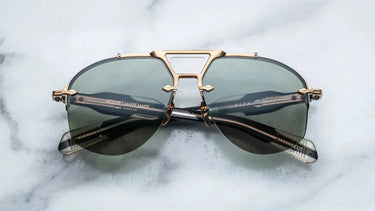 ALTA in GOLD by Jacques Marie Mage is a masterstroke of craftsmanship and confidence — limited-edition rimless aviators that capture the adventurous spirit of open skies and timeless sophistication. Handcrafted in Japan, these titanium sunglasses are part of the brand’s celebrated Rimless Series, where bold engineering meets effortless elegance.