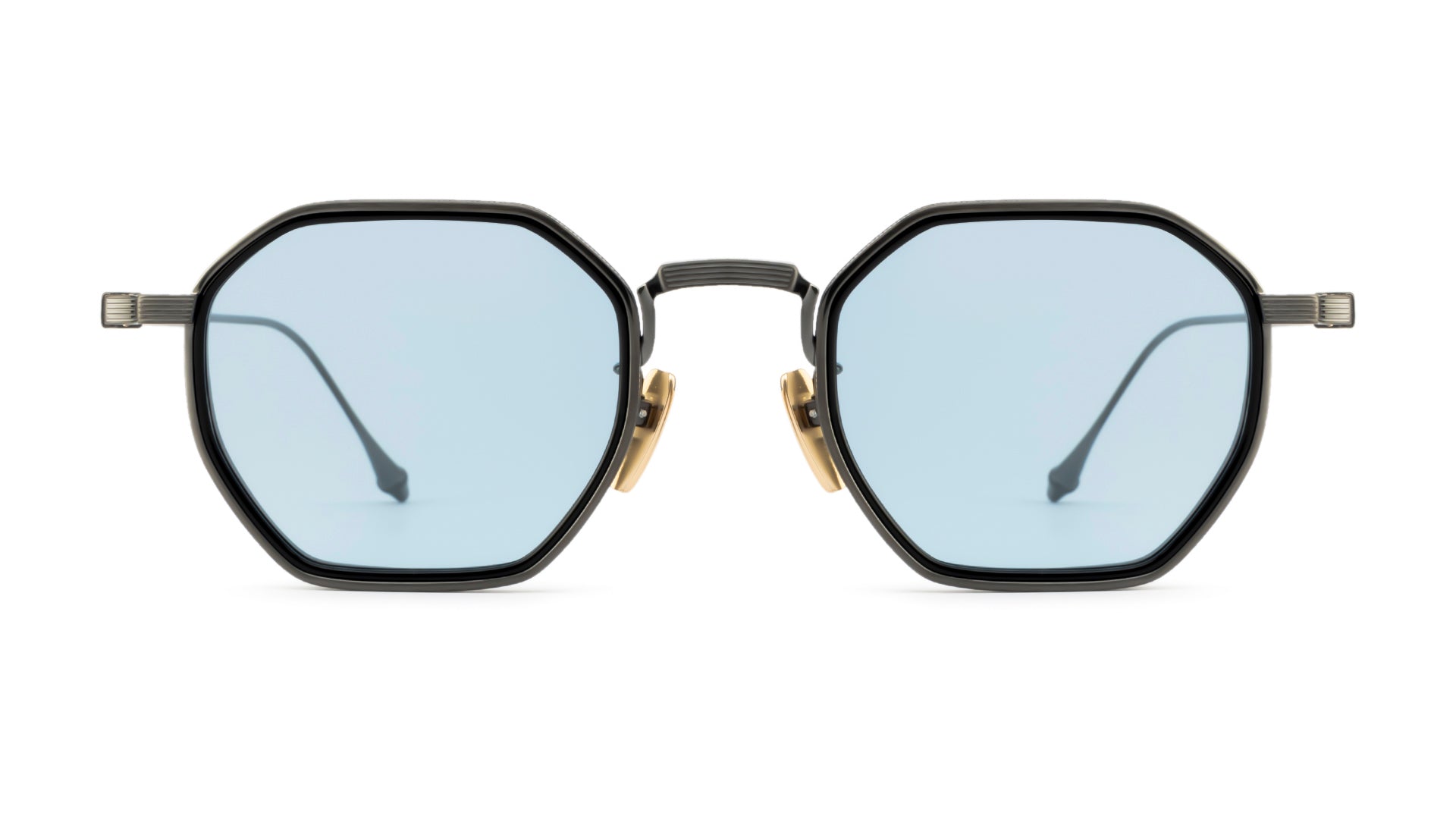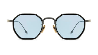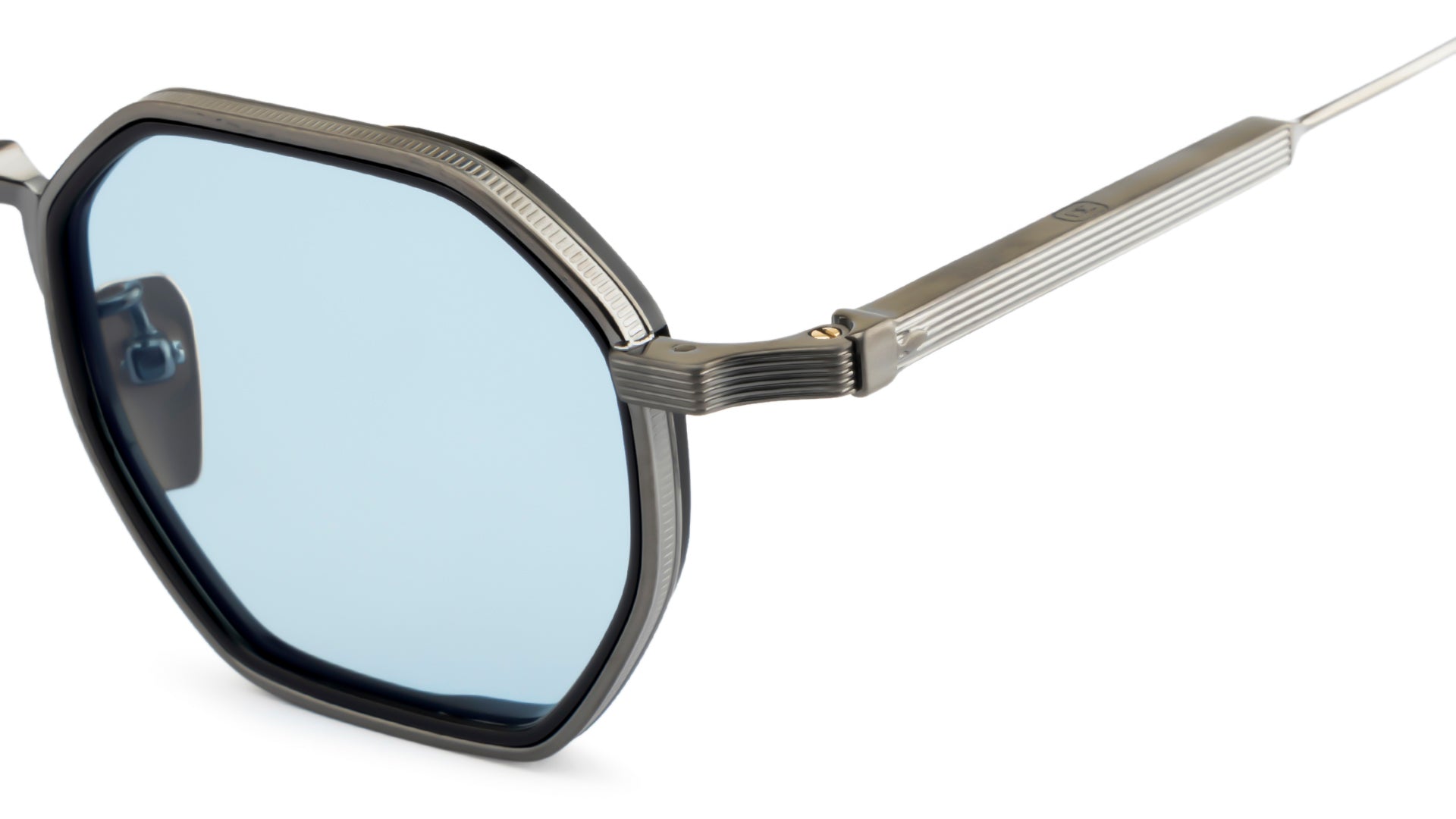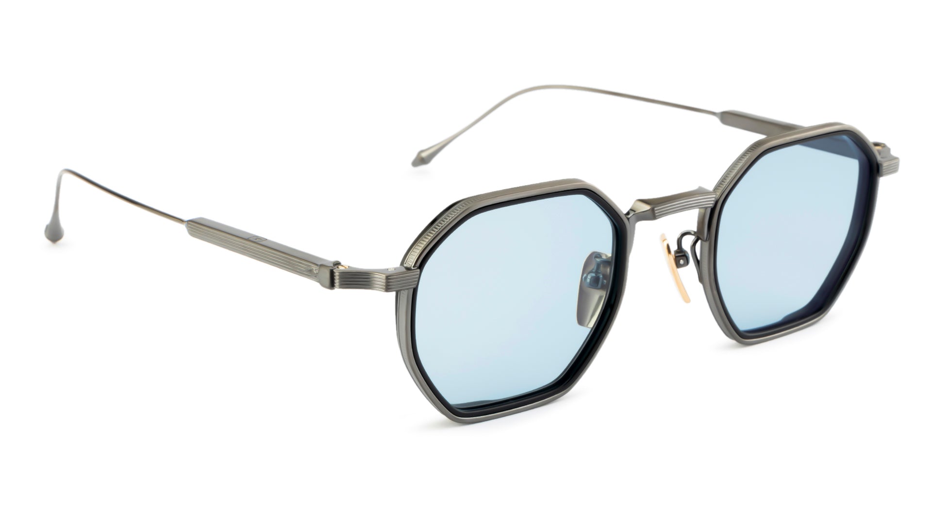 The Frame Montana FMT 4-1 in Blue features a distinctive octagon rim shape designed for optimal balance and geometric sophistication. Titanium rims combined with custom acetate inserts deliver durability, comfort, and unique visual appeal. The brushed dark gun finish enhances the subtle texture, while precision Japanese molding technology ensures fine detailing and exceptional craftsmanship.