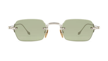 The Frame Montana FMT 7-1 in Green features a slim square silhouette with exceptional balance and precision. Engineered with a sophisticated rimless structure—one of the most challenging designs to produce—it is crafted using Japan’s finest titanium. The subtle shiny finish enhances its minimalist elegance, while advanced molding technology brings out delicate detailing and lightweight comfort.