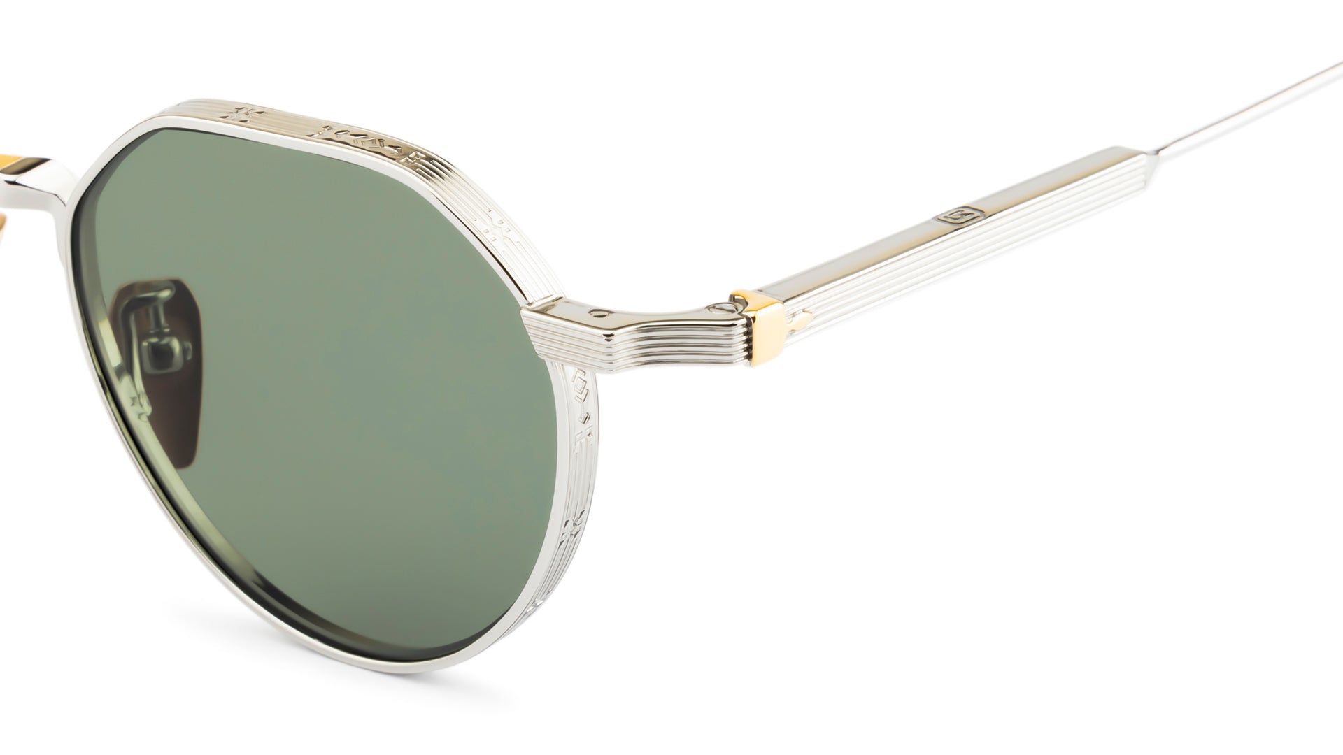 The Frame Montana FMT 5-1 features a crown panto silhouette with precise balance and a striking 5mm rim shield engraved with a unique Native American pattern. Crafted from Japan’s finest titanium with a refined shiny finish, this design blends lightweight comfort with premium detailing. Advanced molding technology brings out delicate lines and a luxurious look.