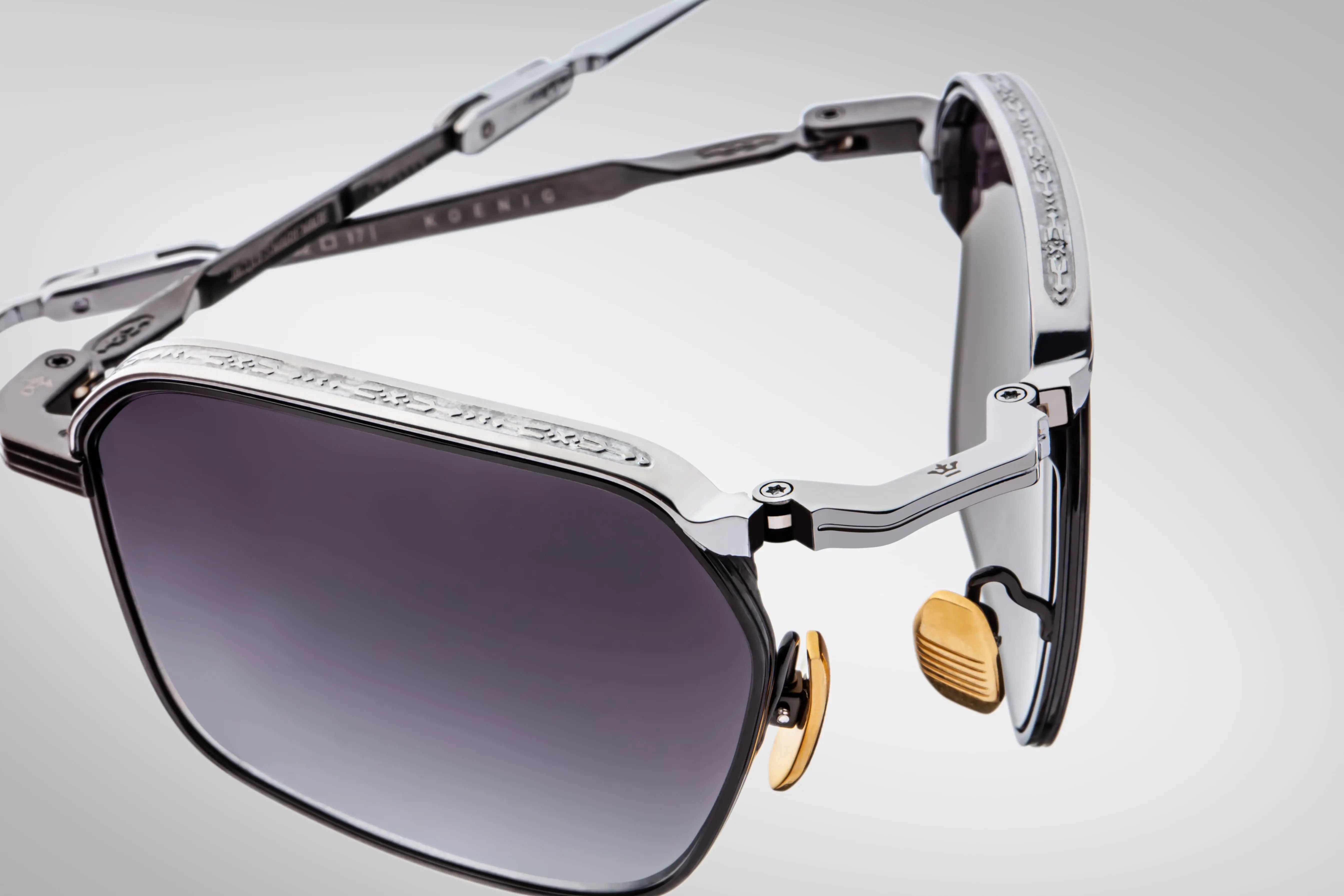 KOENIG – ARMOUR Sunglasses by Jacques Marie Mage are a masterful blend of engineering, design, and artistry. Part of the groundbreaking Éditions Pliables series, these limited-edition folding frames are handcrafted in Japan using 100% beta titanium, developed over two years to achieve seamless portability and timeless style.