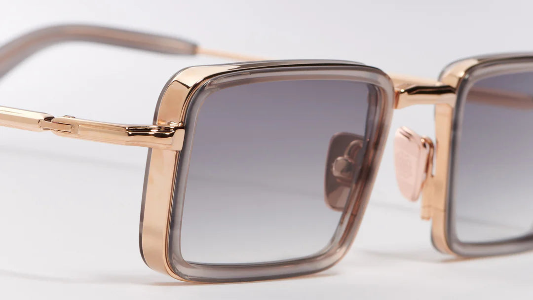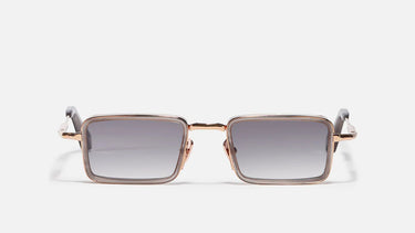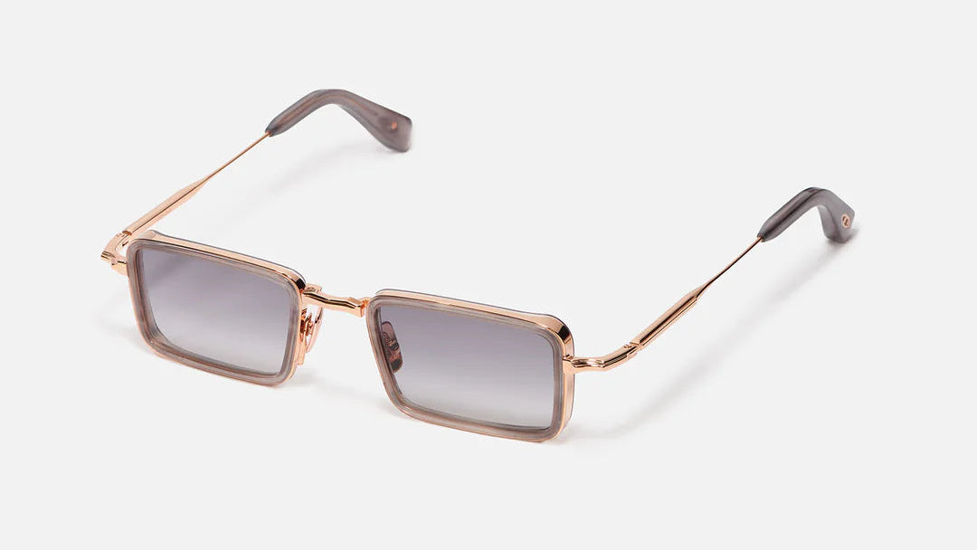 A luxurious rose-gold titanium corewire (5µ, with a jeweler’s hallmark engraved inside the temple) forms the internal structure. The rims and temple tips are crafted in Workman Grey acetate, paired with grey gradient CR39 lenses featuring an inner anti-reflective coating for enhanced visual comfort.