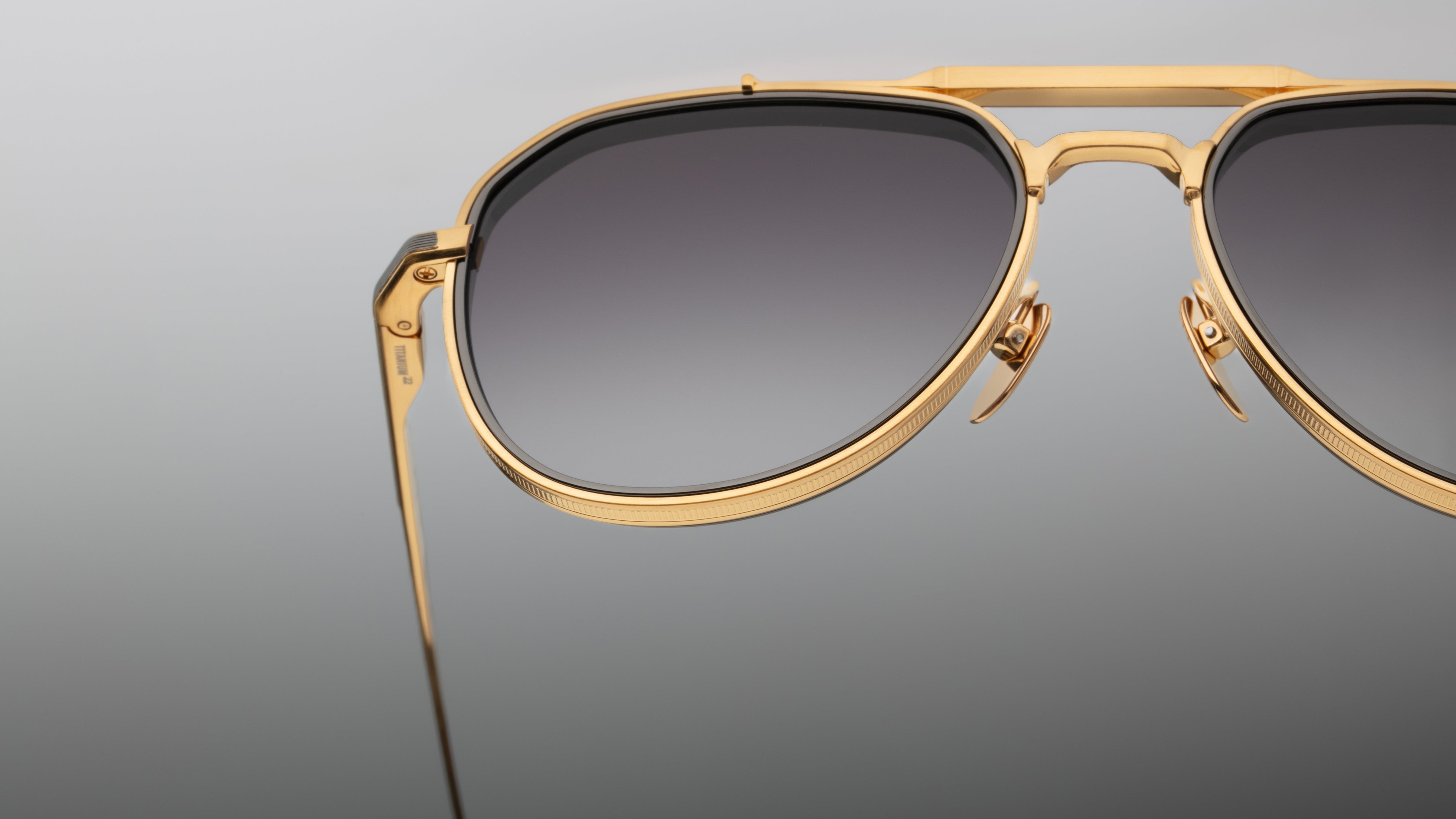 - Prestigious ’70s-inspired titanium pilot sunglasses
