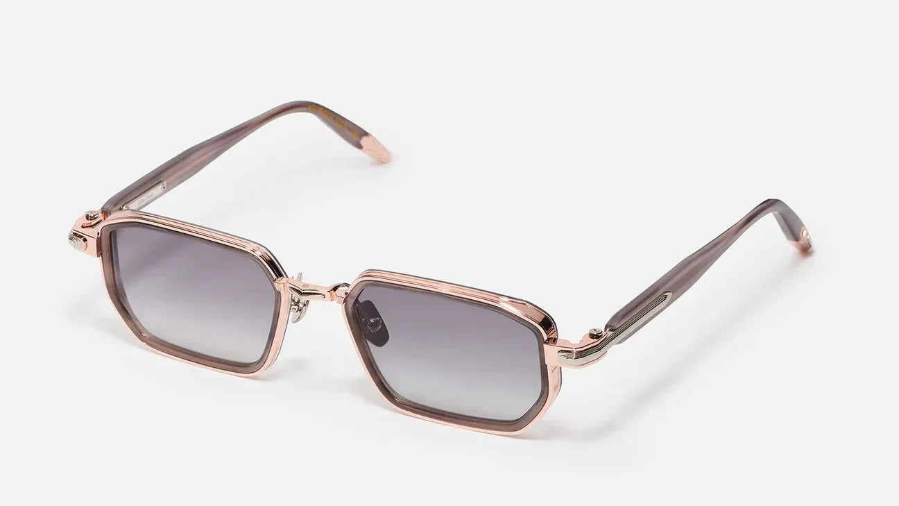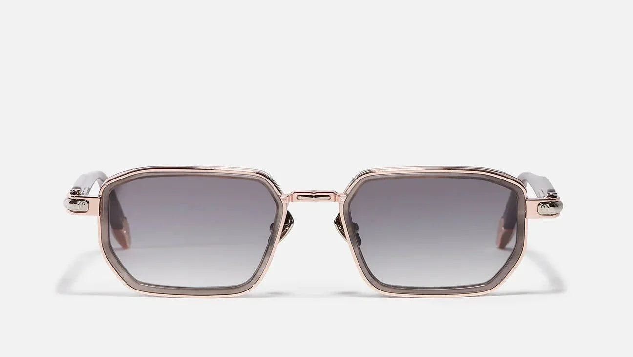 Built around a rose-gold titanium corewire structure, the frame is elevated with platinum-plated decorative elements (5µ) and includes a jeweler’s hallmark engraved inside the temple. The rims and temple tips are crafted from Workman Grey acetate, giving the frame a contemporary, understated finish.