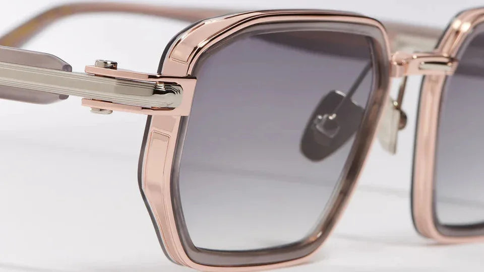 Discover the John Dalia MILES – C476, a unisex rectangular frame handcrafted in France, blending rose-gold titanium, sculpted metal detailing, and premium acetate in a refined architectural composition. Designed to fit medium to large faces, this model offers a sophisticated and modern aesthetic.
