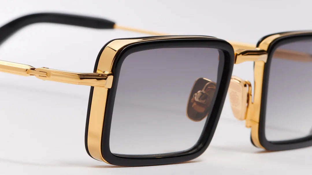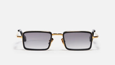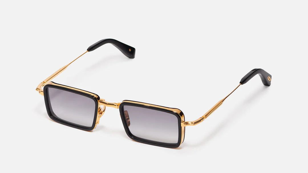 A luxurious yellow-gold titanium corewire (5µ with jeweler’s hallmark) enhances durability and sophistication. The rims and temple tips are crafted in shiny black acetate, paired with grey gradient CR39 lenses featuring an inner anti-reflective coating for optimal comfort and clarity.