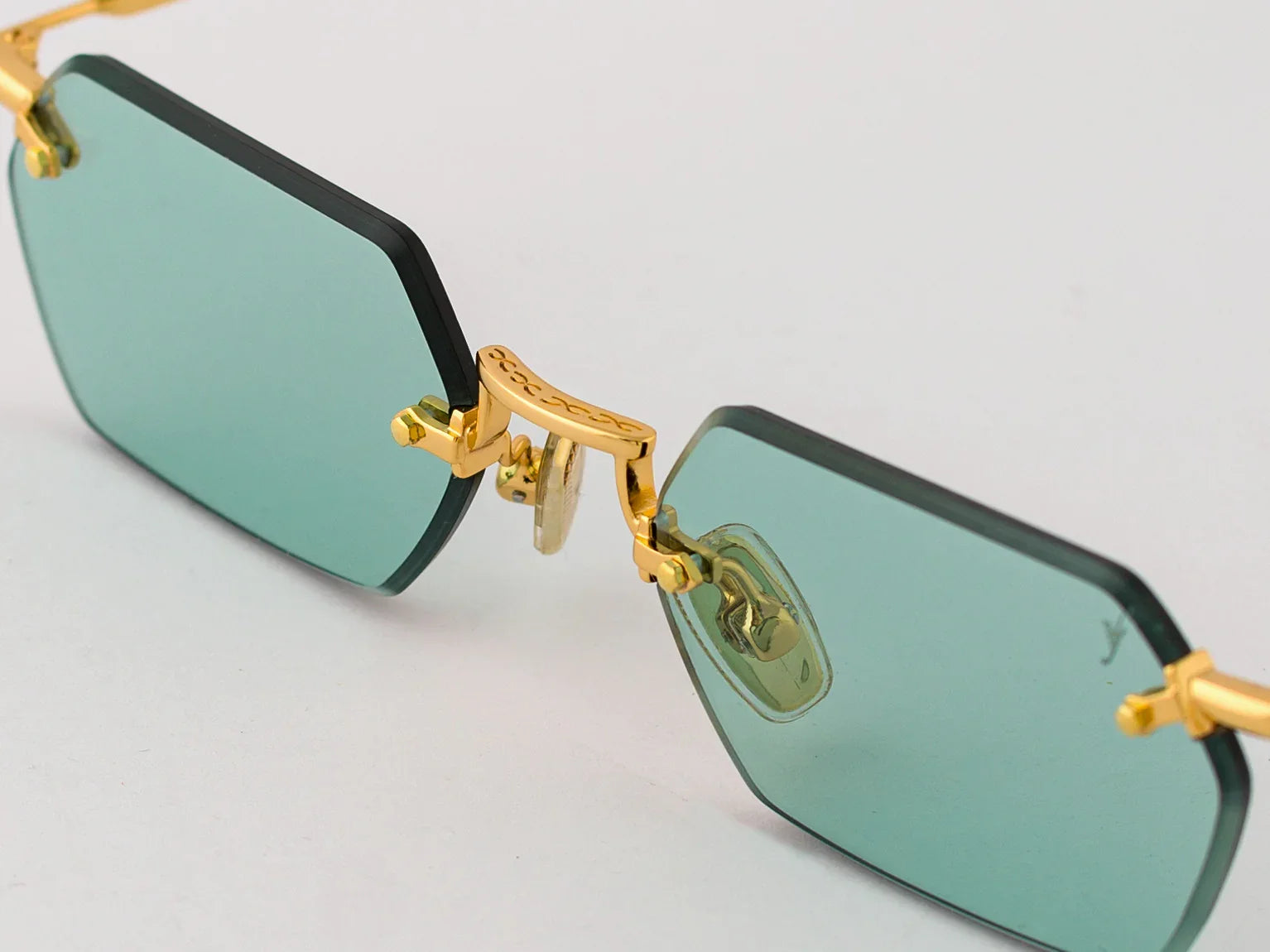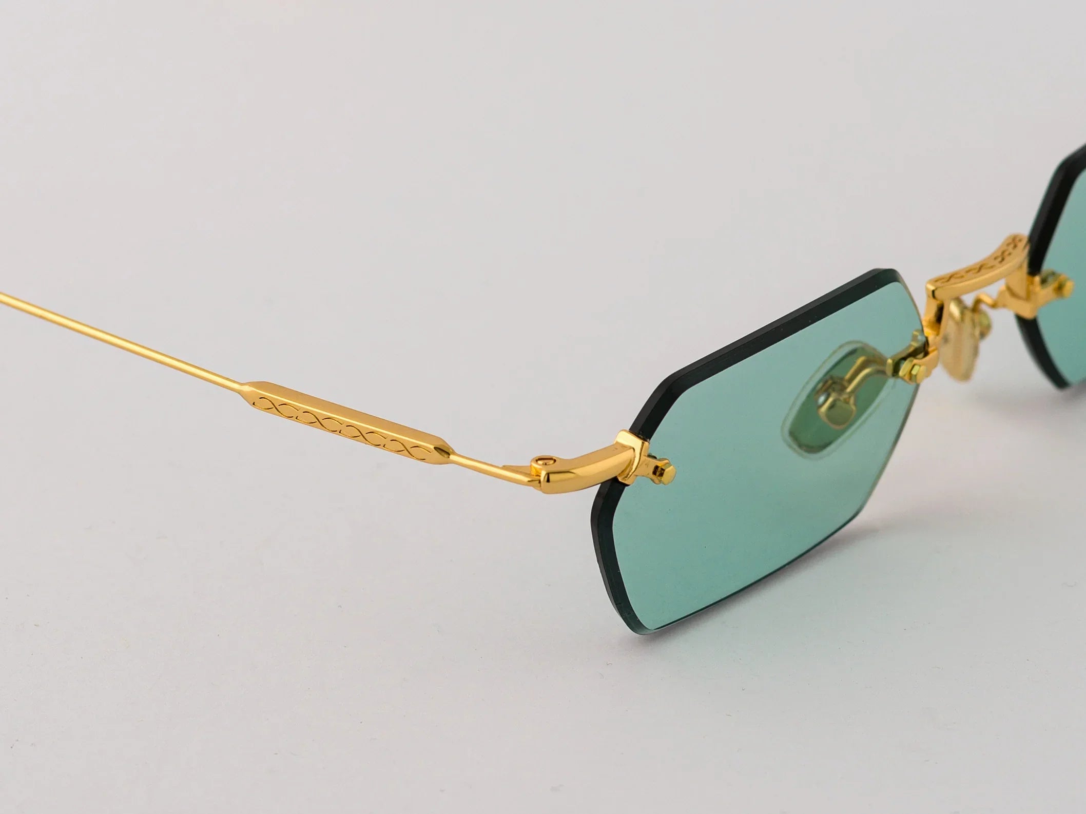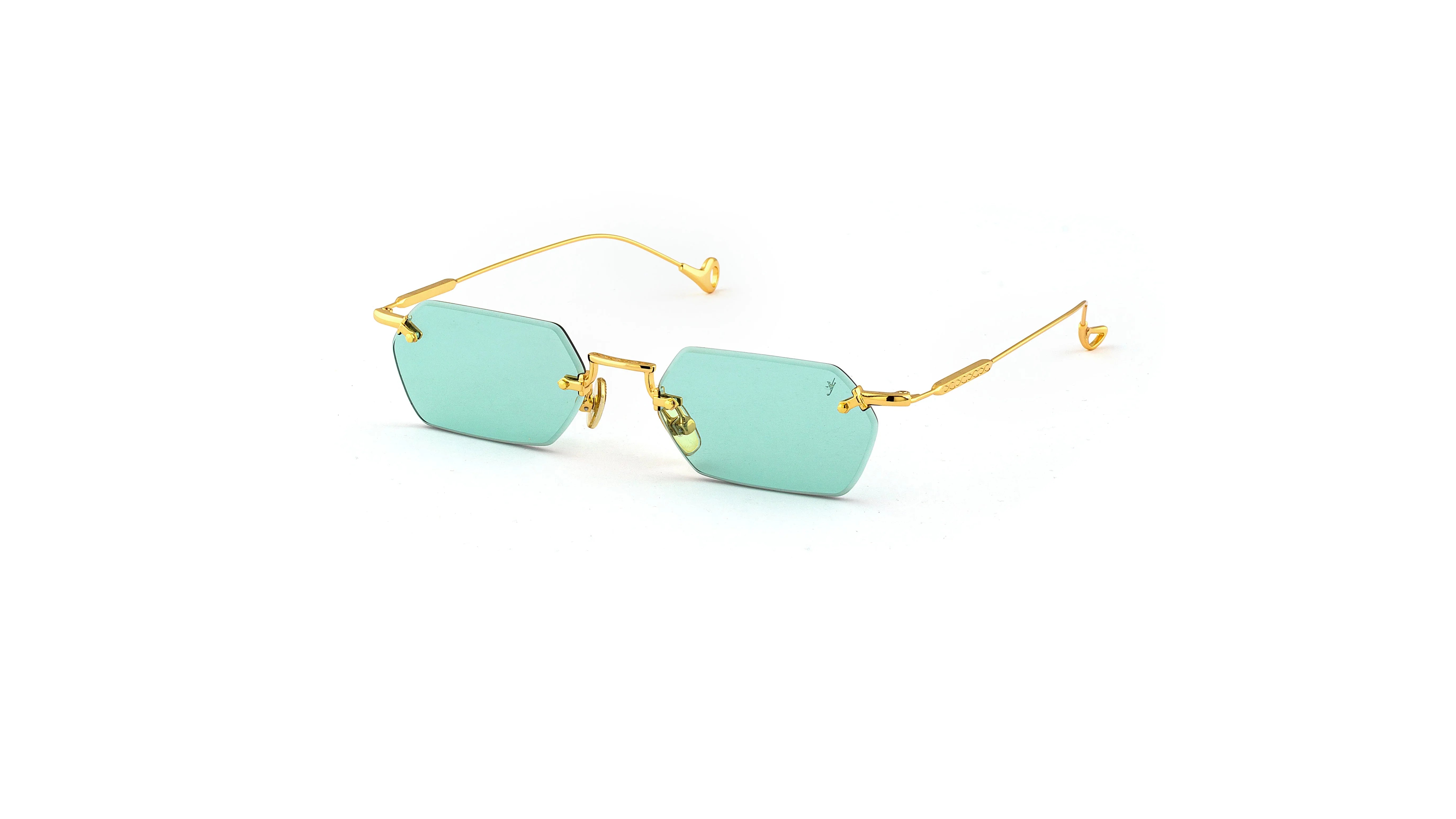 The TANK C.4-48 showcases a clean, modern silhouette with its Glasant (rimless) construction and ultralight steel details. The combination of gold temples with vibrant aqua green lenses delivers a fresh, distinctive look made with refined Italian craftsmanship.