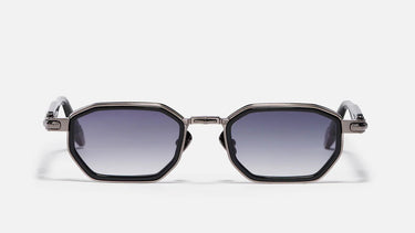 Built on a ruthenium titanium corewire with ruthenium-plated decorative elements (3µ), the frame showcases a striking, modern aesthetic. The temple tips and rims are crafted from shiny black acetate, adding depth and contrast to the design. Completing the look, dark blue gradient CR39 lenses with an anti-reflective inner coating deliver enhanced clarity and comfort.
