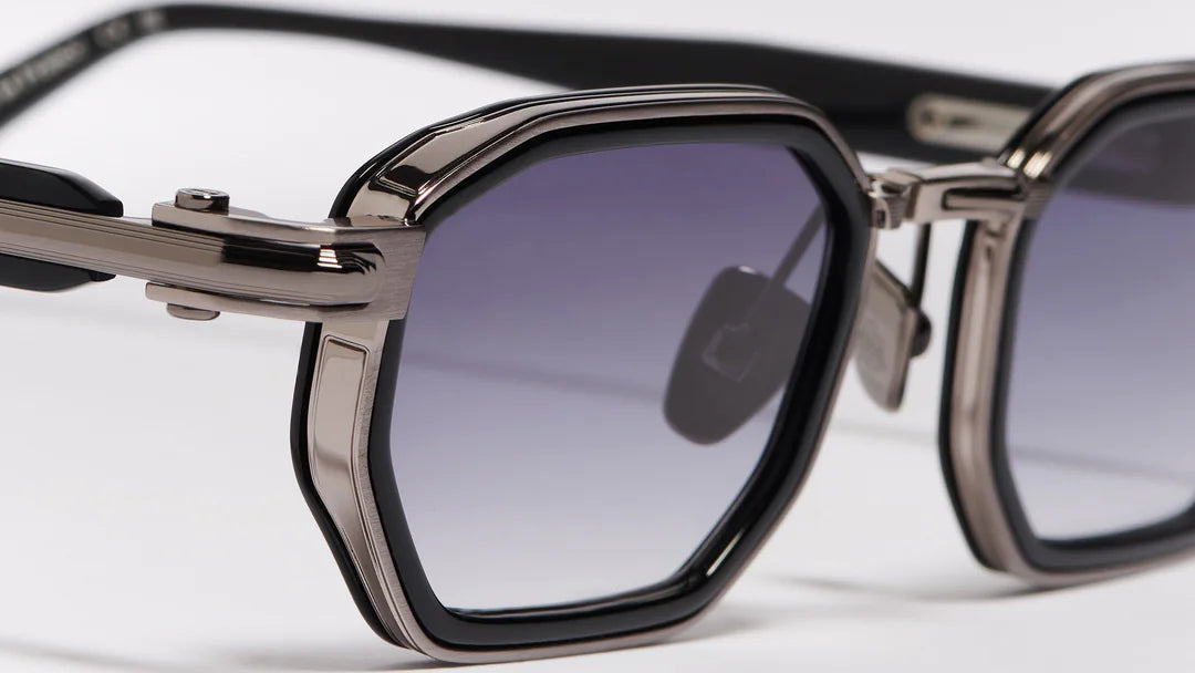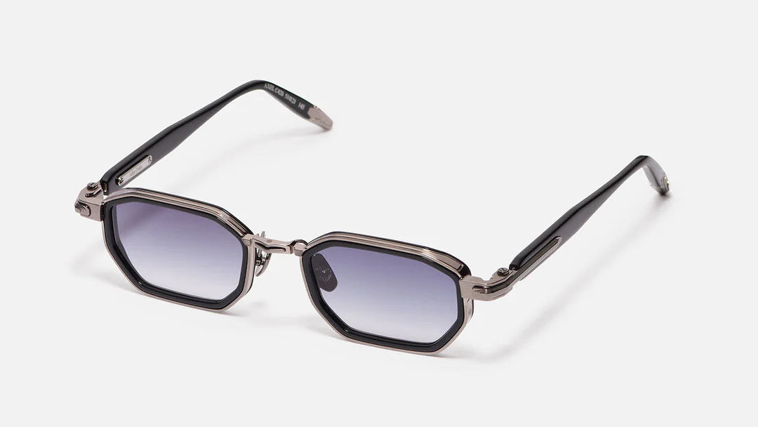 Introducing the John Dalia AXEL – C420, a unisex rectangular frame handcrafted in France, merging ruthenium titanium, sculpted metal accents, and premium acetate in a refined architectural design.