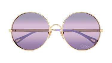 Colors: Polished gold metal front and temples, paired with expressive violet gradient lenses.