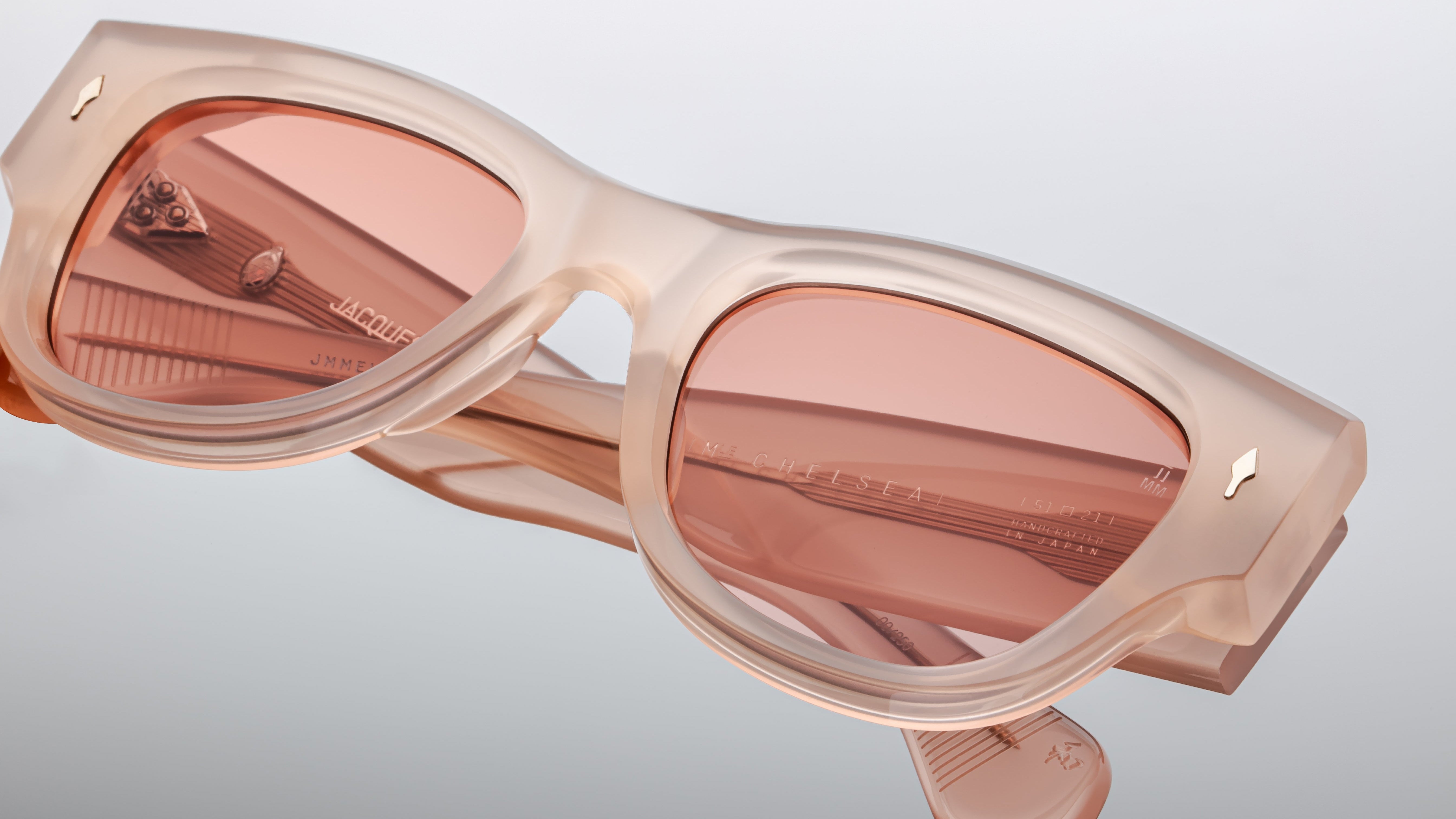 CHELSEA in PINK QUARTZ by Jacques Marie Mage radiates bold sophistication and sculptural artistry. From a limited production batch of 250 pieces, these classic Panto-shaped sunglasses reinterpret vintage inspiration through a lens of modern elegance and architectural precision.