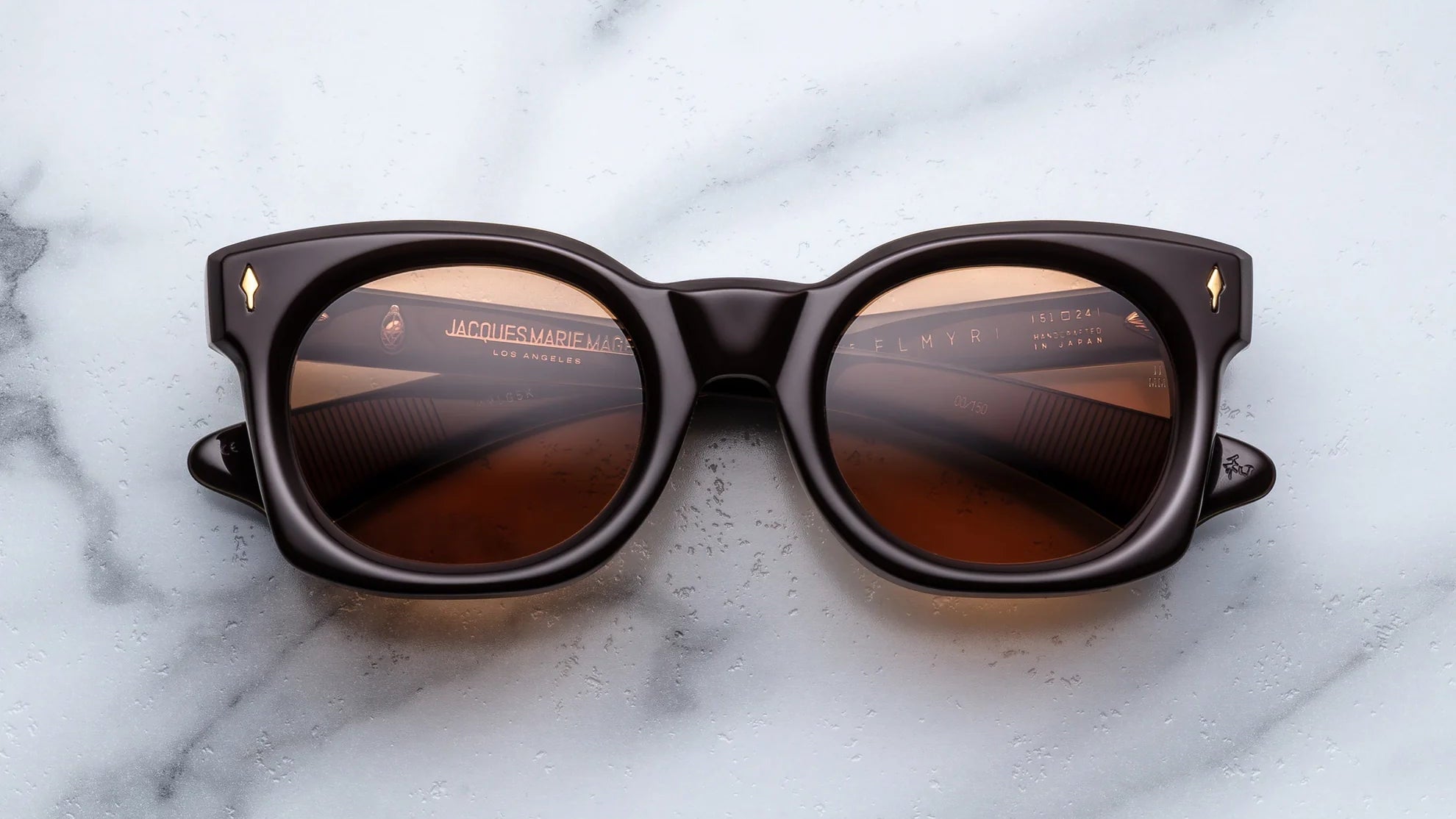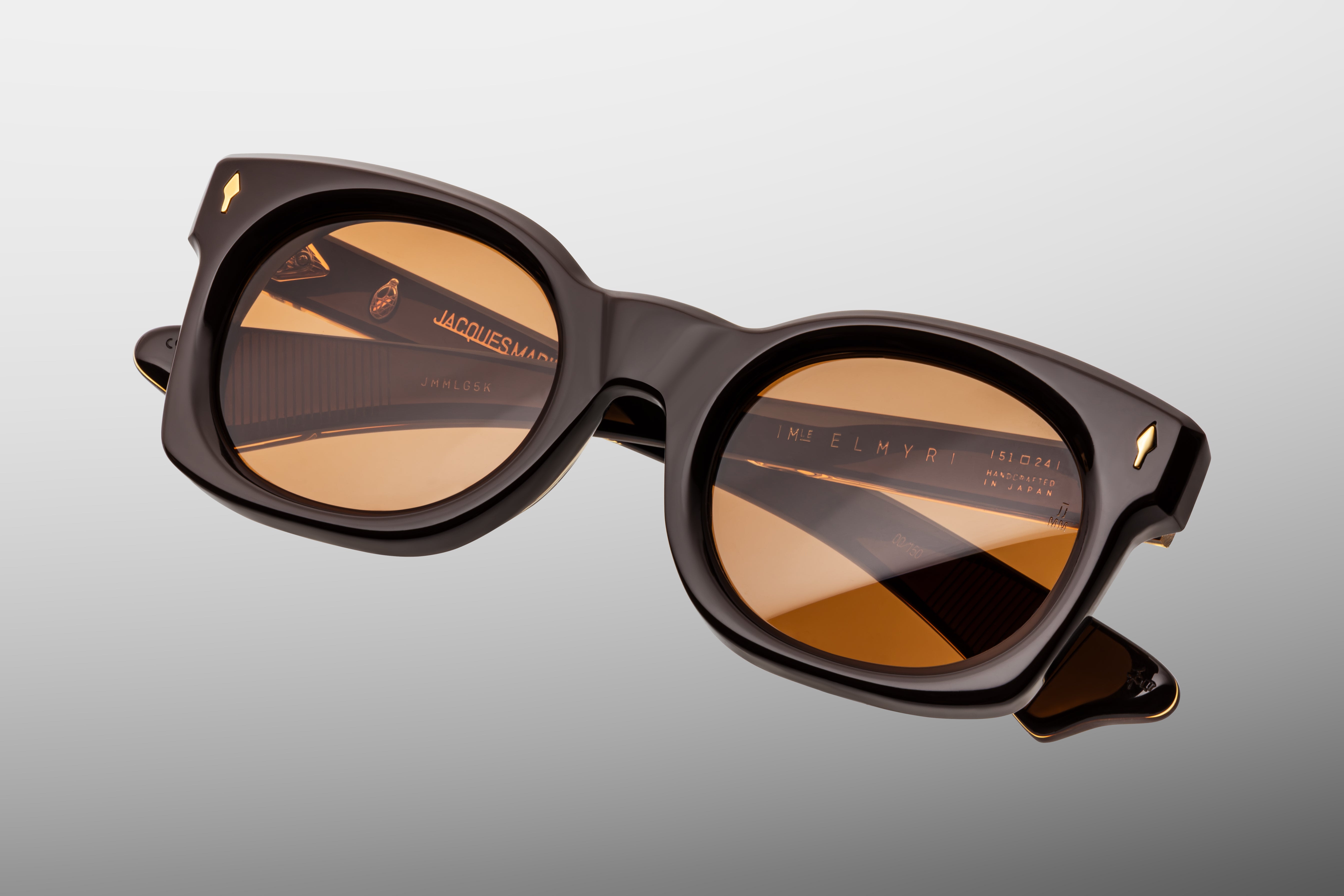 ELMYR in WALNUT by Jacques Marie Mage is a rare and refined expression of authenticity - a limited-edition sunglass handcrafted in Japan, defined by sculptural bevels, confident proportions, and masterful ’70s-inspired design.