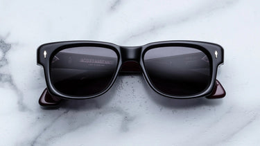 Inspired by the glasses Jeff Goldblum wore in the mid-’80s, the Fly Bloodstone features a distinctive rounded rectangular lens shape defined by a sculpturally beveled brow that conveys momentum and metamorphosis. The richly expressive Bloodstone colorway heightens its dramatic presence, while signature arrowhead front pins, custom hinges, and wirecore temples with refined hairline detailing reflect JMM’s meticulous craftsmanship. Handcrafted from plant-based acetate, this collectible design is an alchemy of form and feeling - alive with cinematic tension and subtle transformation.