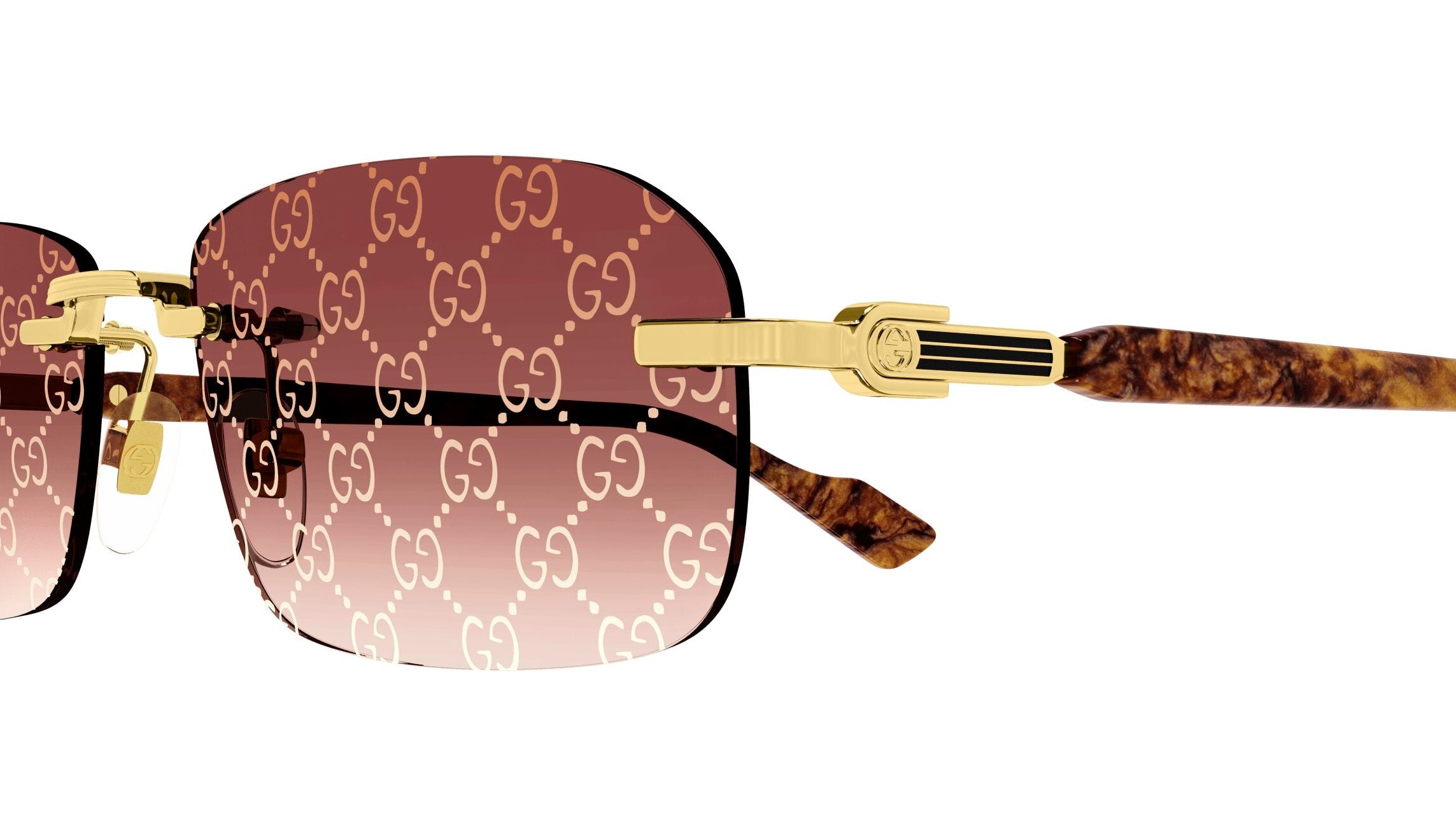 The Gucci GG1221S-004 from the Fall Winter 2022 Collection is a vintage-inspired rimless sunglass reinterpreted with a modern, street-style attitude. Designed for men, this refined piece blends archival influence with contemporary detailing.