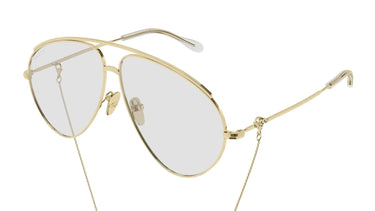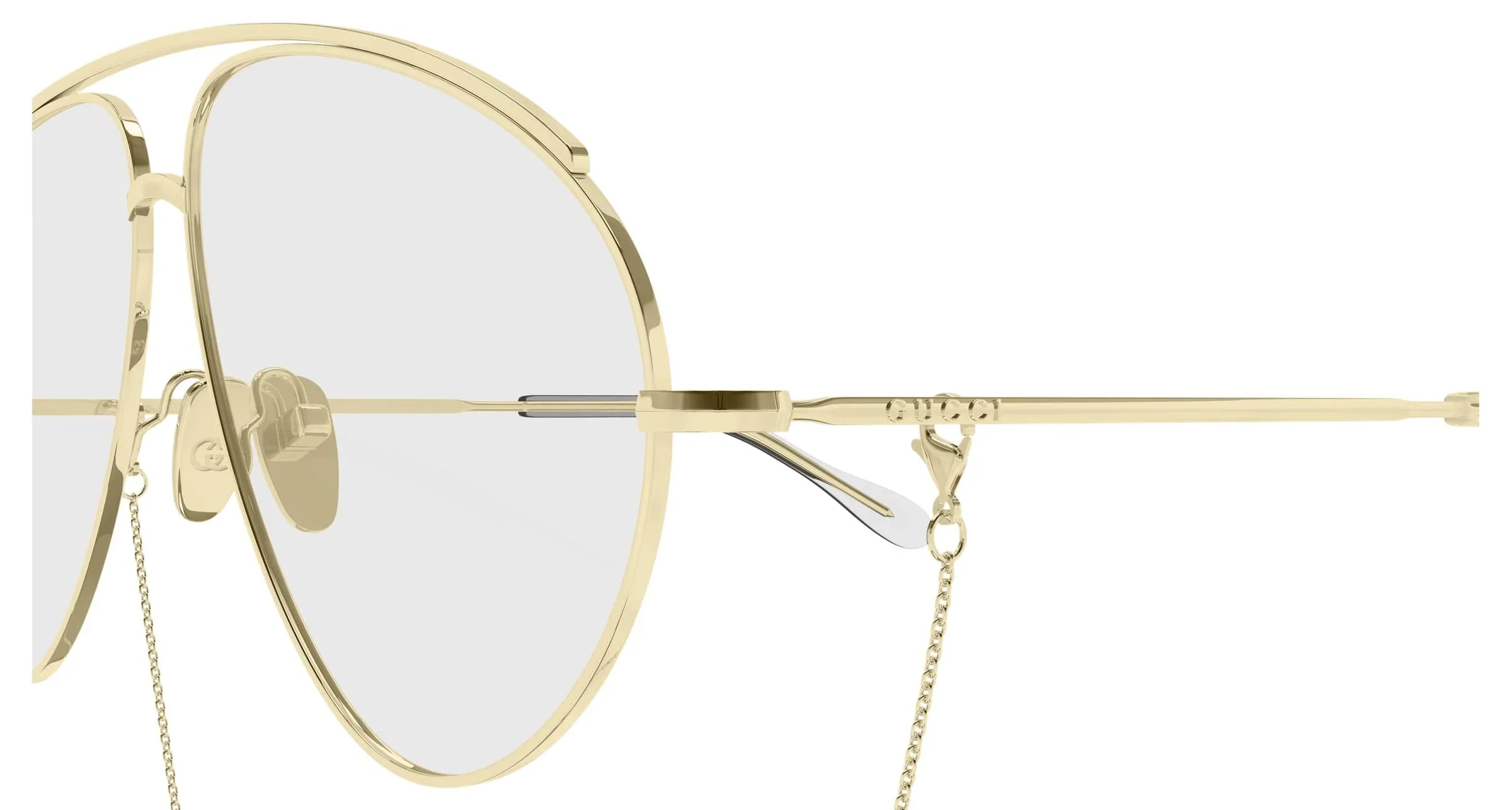 Colors: Rich gold metal front and temples, finished with transparent lenses for a modern twist.