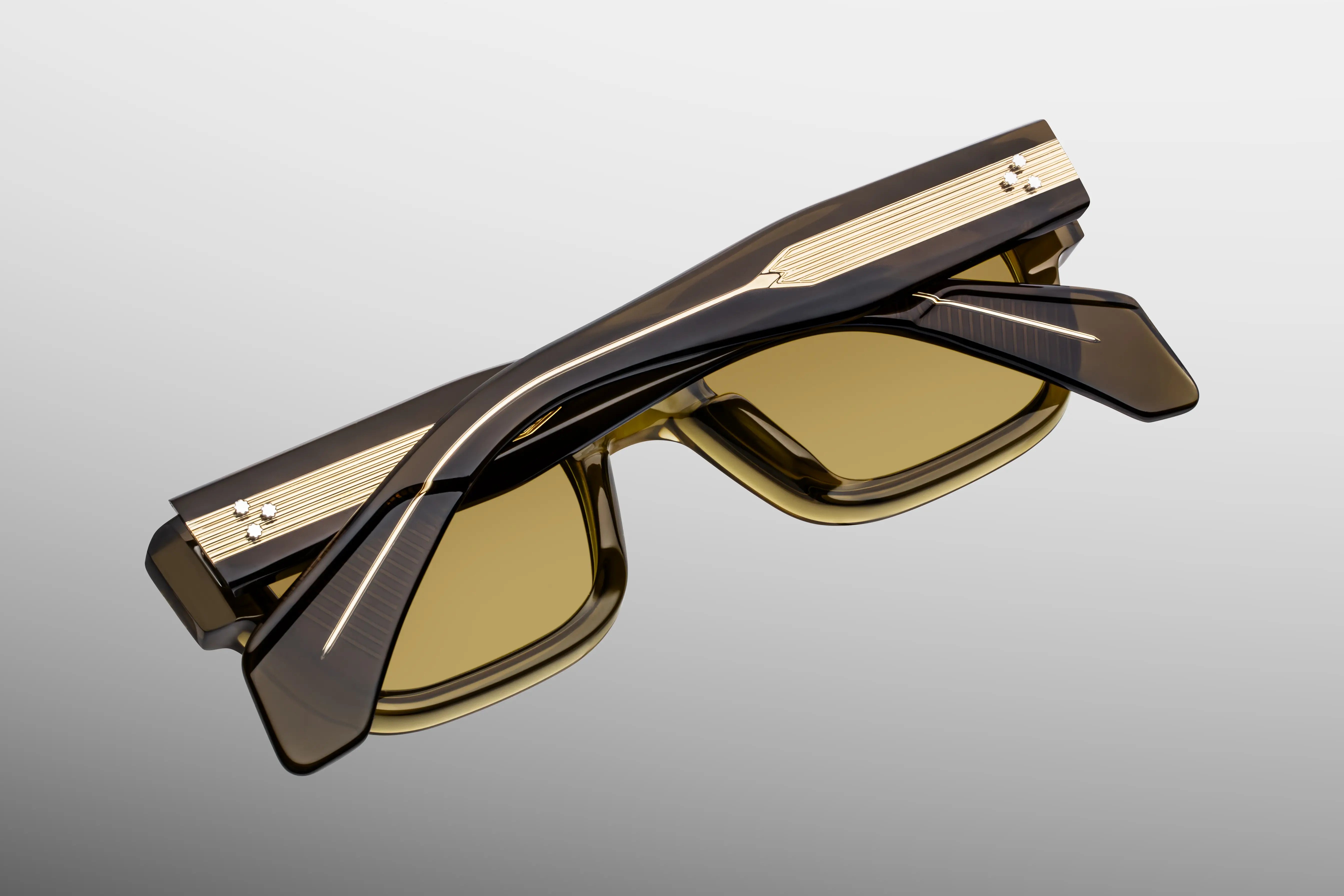 Designed as a refined rectangular silhouette with sculptural volumes and a confident low profile, the Jeff Volvox balances architectural structure with effortless individuality. The distinctive Volvox colorway enhances its tailored presence, while signature arrowhead front pins, custom hinges, and wirecore temples with refined hairline detailing reflect JMM’s meticulous craftsmanship. Handcrafted from plant-based acetate, this collectible design achieves a rare equilibrium of elegance and eccentricity.