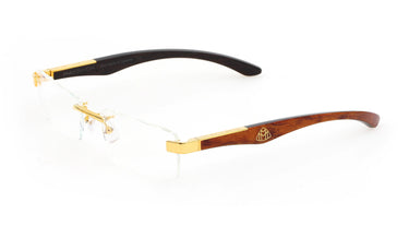 The clean, minimalistic lines of the rimless lenses are elevated by the natural beauty of horn, the warmth of fine wood, and the brilliance of titanium. Lightweight yet durable, this frame embodies sophistication while ensuring lasting comfort.
