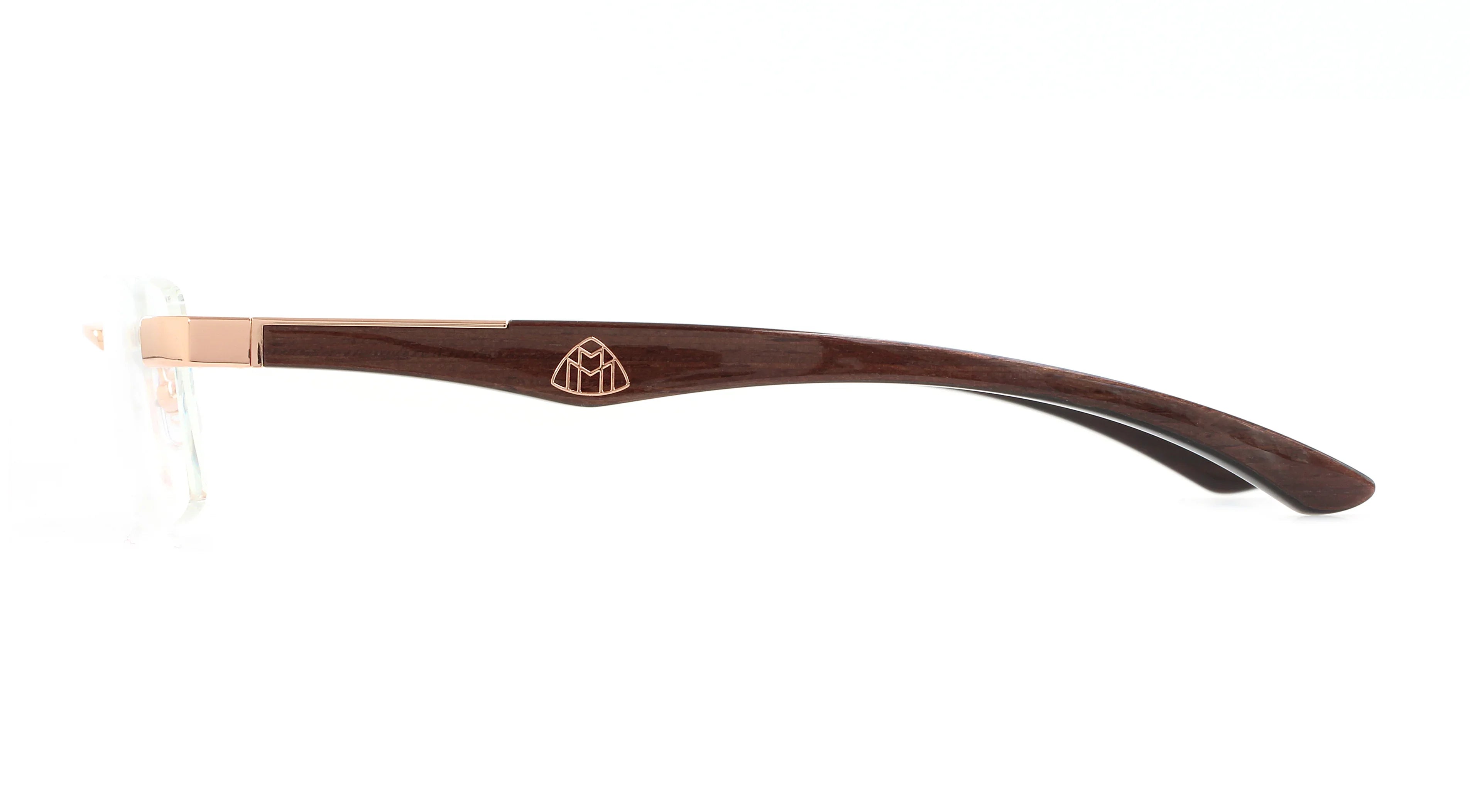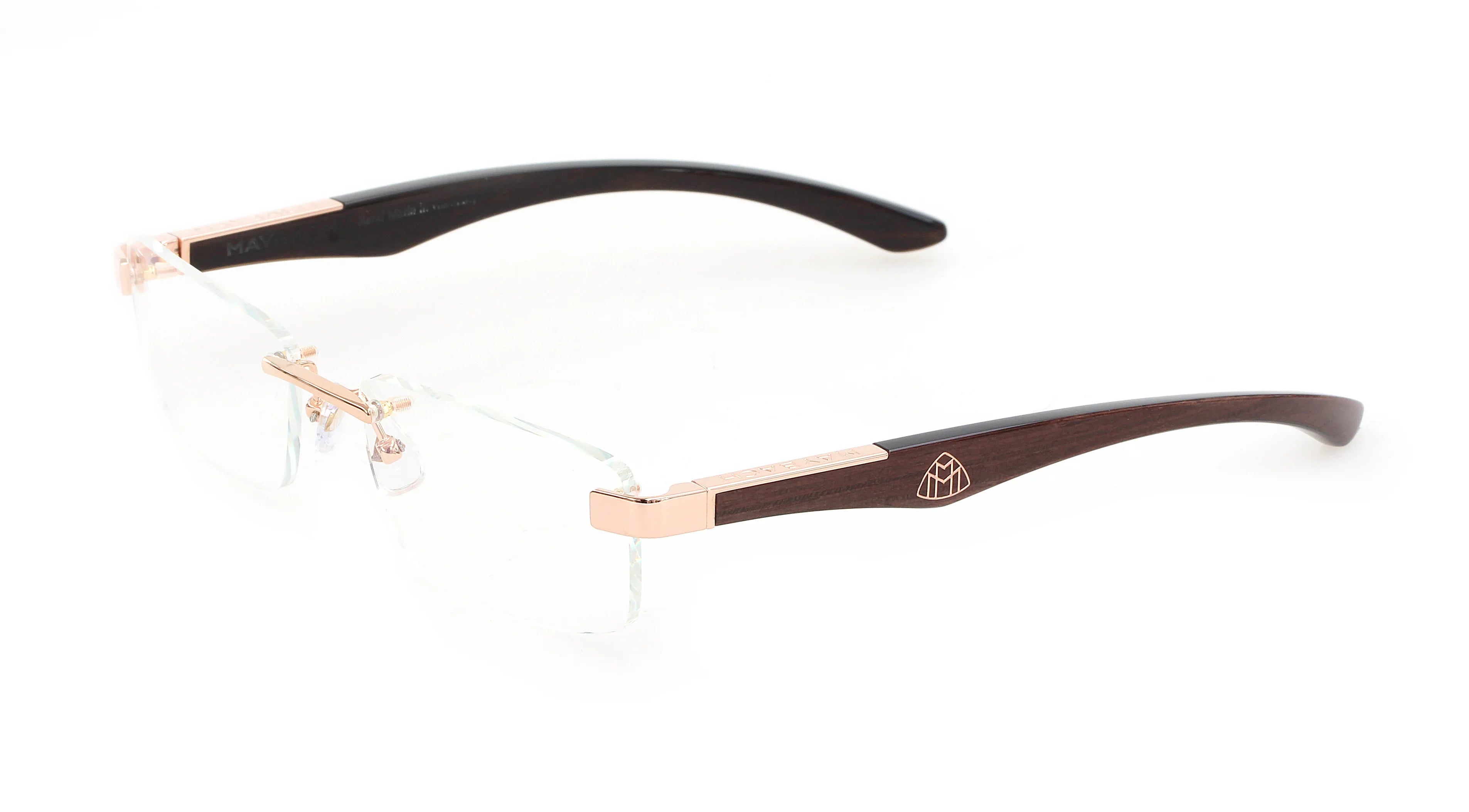 The clean, minimalistic lines of the rimless lenses are elevated by the natural beauty of horn, the warmth of fine wood, and the brilliance of rose gold plating. Lightweight yet durable, this frame embodies sophistication while ensuring lasting comfort.