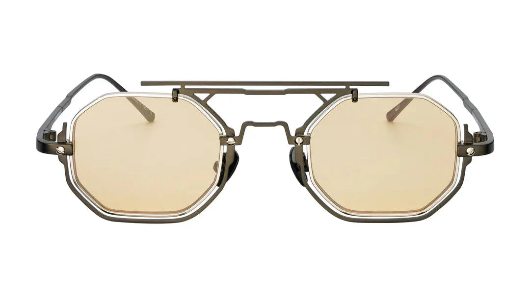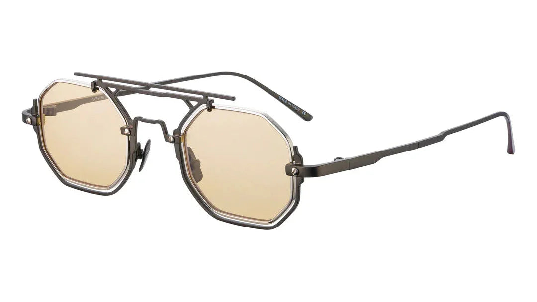 “The Gizy” is the embodiment of Vysen’s architectural vision, a sculptural stainless-steel masterpiece defined by geometry and precision. Its distinctive octagonal lenses and elevated double-bridge design deliver powerful presence, while the interplay of matte and polished metal finishes adds depth and contrast. Lightweight, refined, and unapologetically bold, “The Gizy” transforms eyewear into modern architecture for the face.