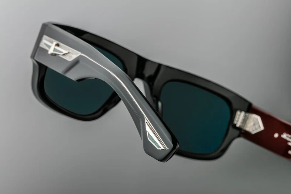 THUNDERCLOUD in BLOODSTONE by Jacques Marie Mage channels the raw power and mystique of the open plains into a refined, rectangular silhouette that epitomizes balance, structure, and elemental grace. Part of The Last Frontier Collection, these sunglasses evoke the strength and spirit of vast Western landscapes where storms gather and legends are born.