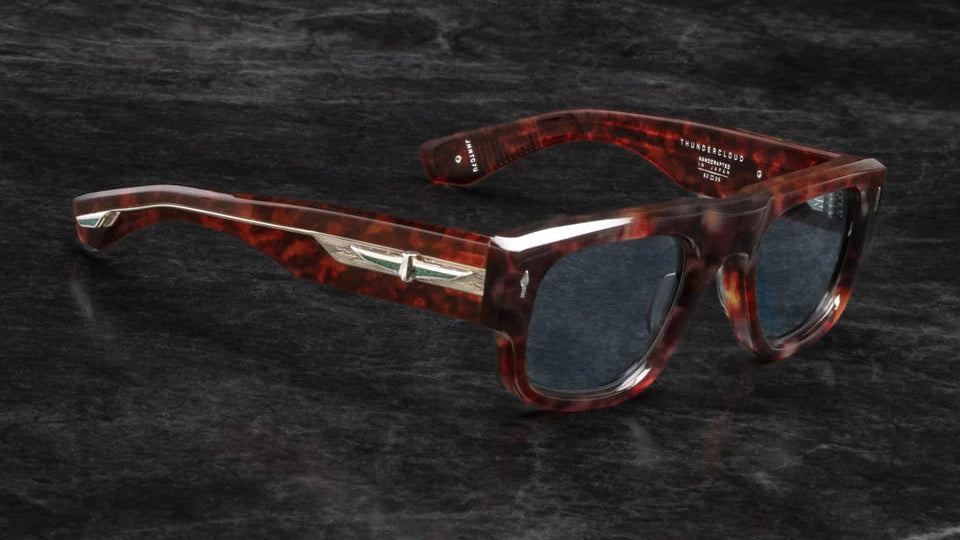 THUNDERCLOUD in BRECCIA by Jacques Marie Mage is a sculptural expression of balance, power, and poise — a refined interpretation of rugged Western spirit. From The Last Frontier Collection, these rectangular sunglasses embody quiet strength and elemental beauty inspired by storm-kissed horizons and shifting desert skies.