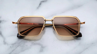 Part of The Titanium Series, the Vasco Gold features a new V-shaped profile and custom hidden hinges that maintain a clean, seamless silhouette. Hairline epoxy details add subtle sophistication, while plant-based acetate temple tips offer exceptional comfort and a touch of sustainable craftsmanship. The warm golden finish radiates timeless appeal, making this frame a perfect balance of form and finesse.