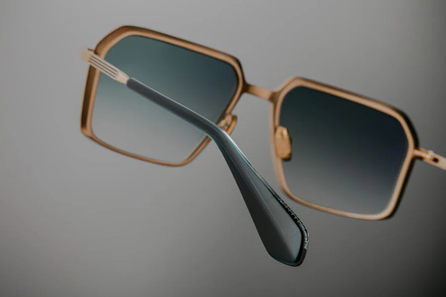 VASCO in PISCES by Jacques Marie Mage is a stunning evolution of late-‘70s design, reimagined through contemporary craftsmanship. These sleek, rectangular titanium sunglasses are a sophisticated balance of artistry and precision, handcrafted for those who appreciate quiet strength and refined detail.
